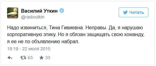 | Уткин потребовал от Канделаки извинений за сообщение в соцсети лавный редактор спортивных каналов «НТВ-Плюс» Василий Уткин потребовал от нового генерального продюсера телеканала «Матч ТВ» Тины Канделаки извинений за сообщение в Instagram. Об этом тележурналист сообщил в своем Twitter.