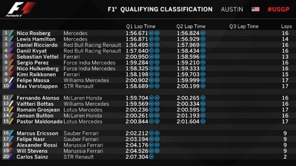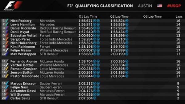 Завершилась увлекательная квалификация Гран-при США, протокол которой возглавил немец из Мерседеса Нико Росберг.