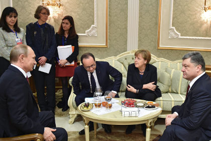 Путин призвал украинскую сторону четко следовать букве и духу минского комплекса мер. В частности, он указал на необходимость согласовать с самопровозглашенными Донецкой и Луганской народными республиками и ввести в действие на постоянной основе законодательное оформление особого статуса регионов и закон об амнистии, а также определить модальности и порядок проведения местных выборов.